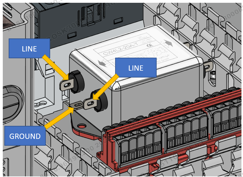 Pay careful attention to the Line side of the filter. There is a 3rd spade that the ground is connected to, as well as the two Line spades. The visual above is hard to tell, but the three wires go to three different spade connectors on the filter.