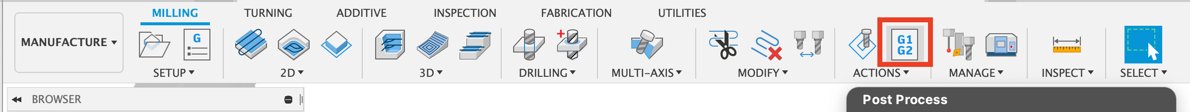 In order to post the operations we select the setups we want to post then select postprocessall from the top menu